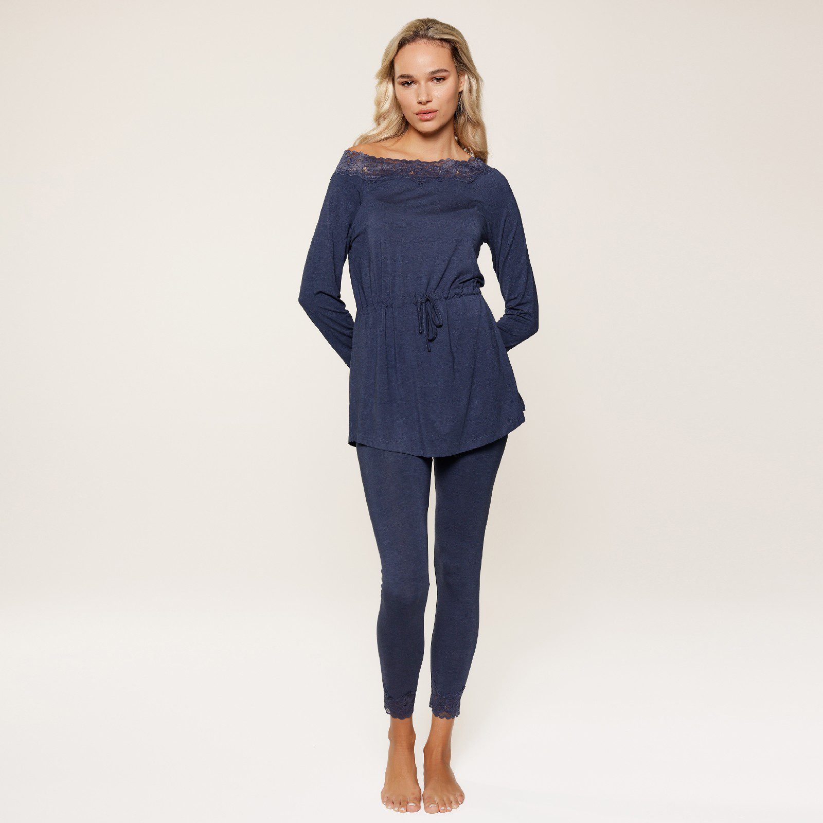 The Beauty of Bamboo, Dieses weiche Pyjama-Set besteht zu 95 % aus Bambus, was es sehr bequem und atmungsaktiv macht. * Die Spitze am Halsausschnitt macht den Pyjama feminin und elegant. * Der elastische Hosenbund sorgt für eine bequeme Passform.